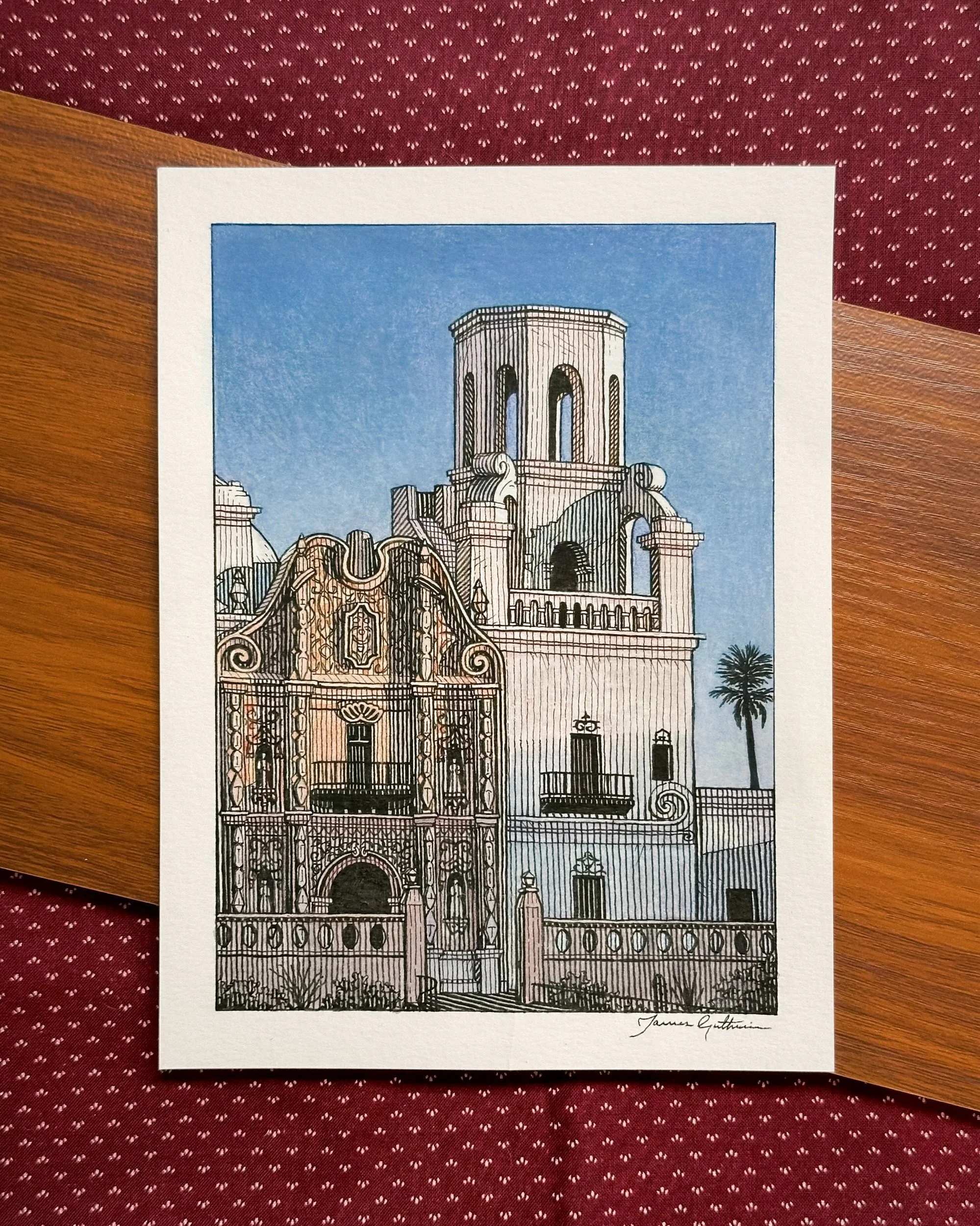 Inventory › San Xavier del Bac Mission - Original Image 1 of 2 Image 2 of 2 San Xavier del Bac Mission - Original $50.00 6 × 8 inOriginal ink & watercolor painting on watercolor paper Add to Cart Added! 6 × 8 inOriginal ink & watercolor painting on watercolor paper Location ||| Tucson, Arizona